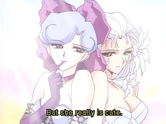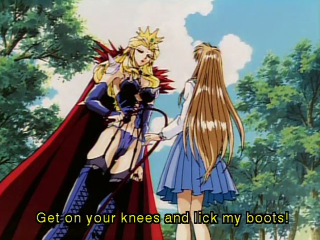 Ha ha wow, this anime is crazy! It's a comedy that's borderline lesbian porn. Miyuki enters Wonderland to find the typical Alice in Wonderland characters as hot babes in bikinis and fetish outfits. At every turn they're flirting with Miyuki and trying to get in under her skirt. Again, this is not a porn! It's a hilarious fantasy adventure.