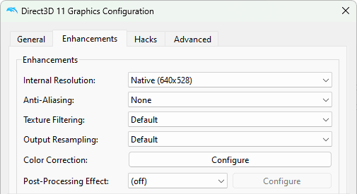 - Click on the drop-down field for “Post-Processing Effect” and select whatever you want. Like when changing the resolution, Dolphin will give you an immediate preview of the effect you select.