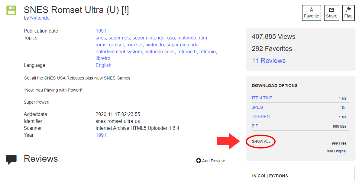 I'm going to again bring up Archive.org and tout how awesome that site is. Typical ROM sites require you to download ROMs one at a time. It can be annoying when you just want to download all SNES games with a single click. Fortunately, it is possible to download all ROMs with a single click at Archive.org!