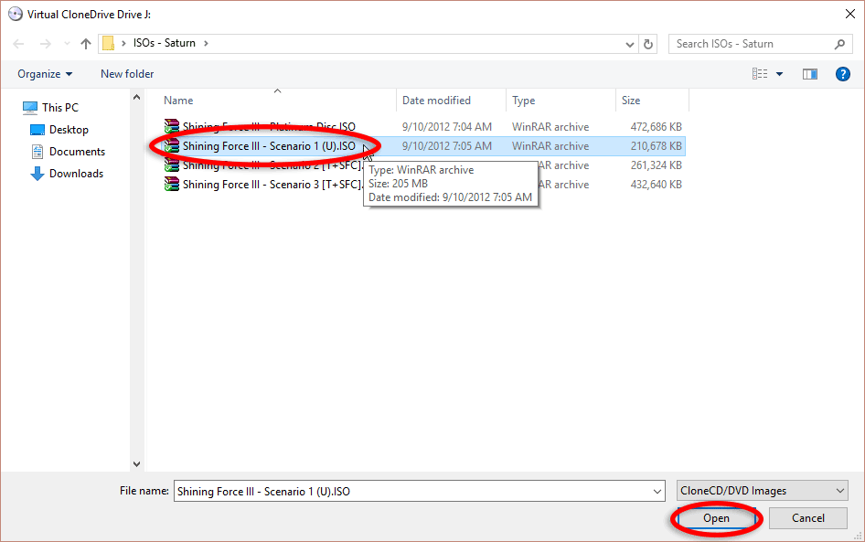 - If your Saturn ISO is an ISO file: You'll see it in this window . Click on your ISO Saturn game, then click Open.