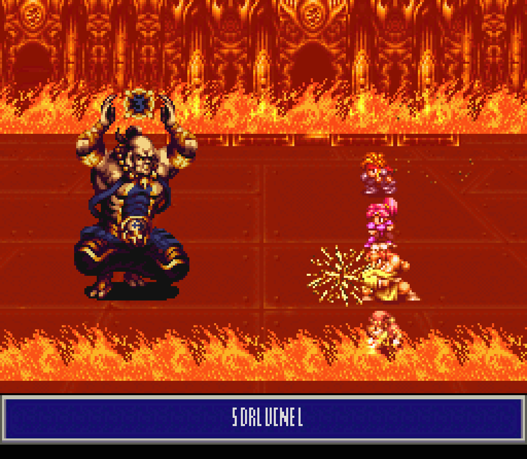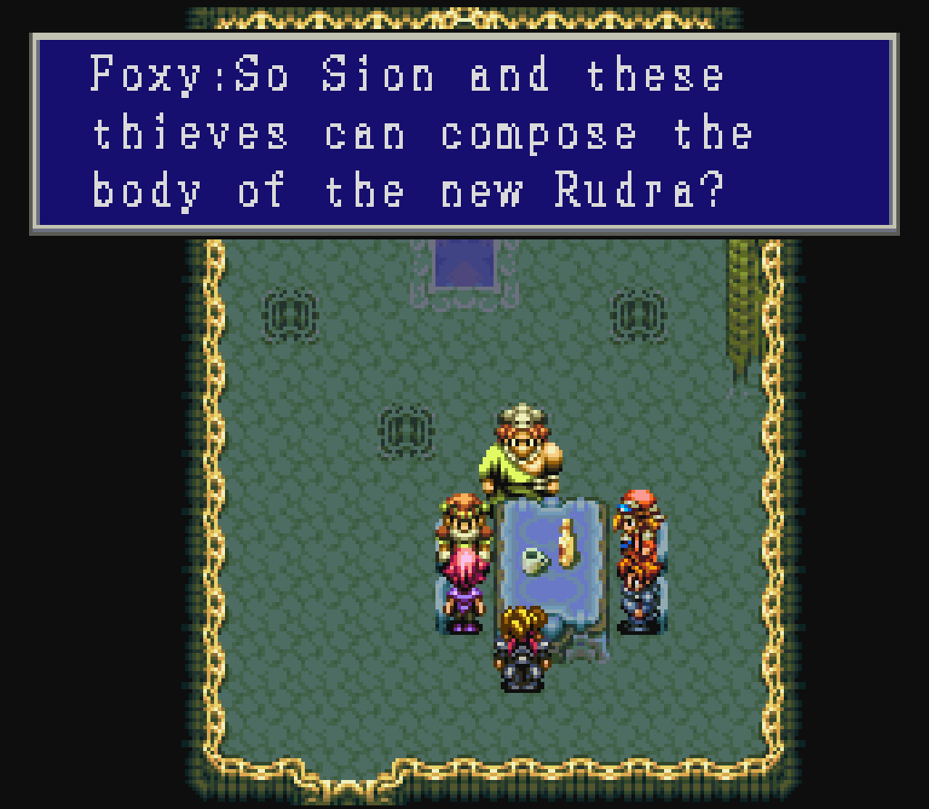 Screenshots: Sion's ScenarioThere's an important detail that I need to point out about these screenshots. Treasure of the Rudras utilizes a high resolution font. Meaning, the font will render higher than the resolution of the graphics. All of the following screenshots were captured in a normal 1x1 size. Hence, the dialogue and in-battle prompts appear rough and jagged.